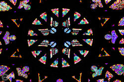 ![]() Vista frontal da catedral | ![]() Vista traseira da catedral | ![]() Detalhes do vitral da entrada |